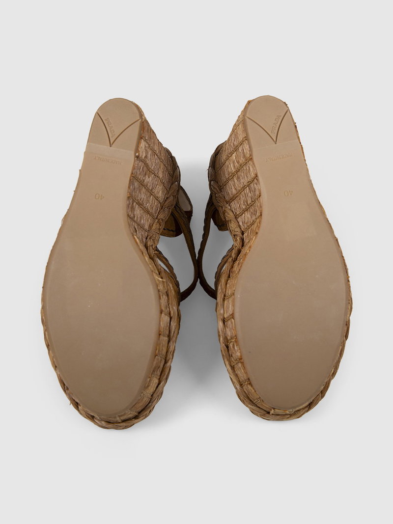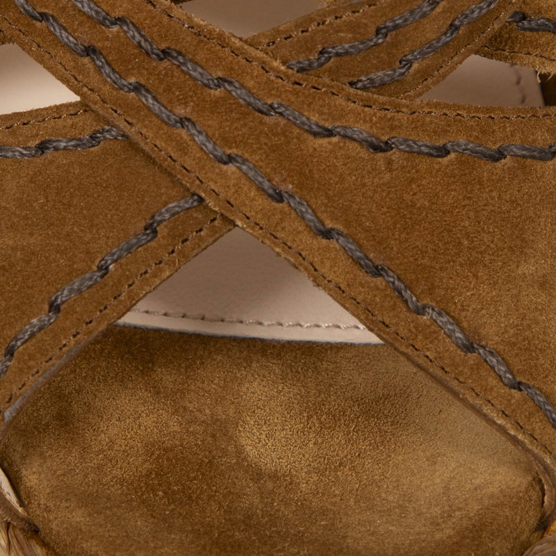Brown suede and wicker wedge sandals in perfect.