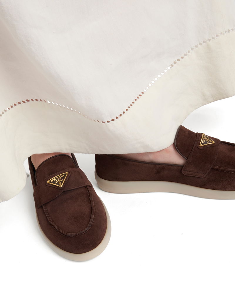 Suede Leather Loafers, Woman, Dark Brown, Size 35,5