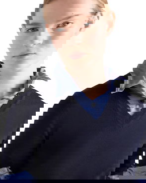 Superfine Wool Crew-neck Sweater, Woman, Navy, Size 36