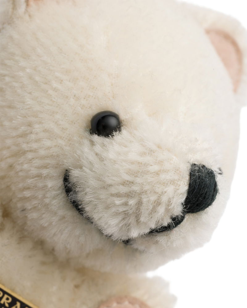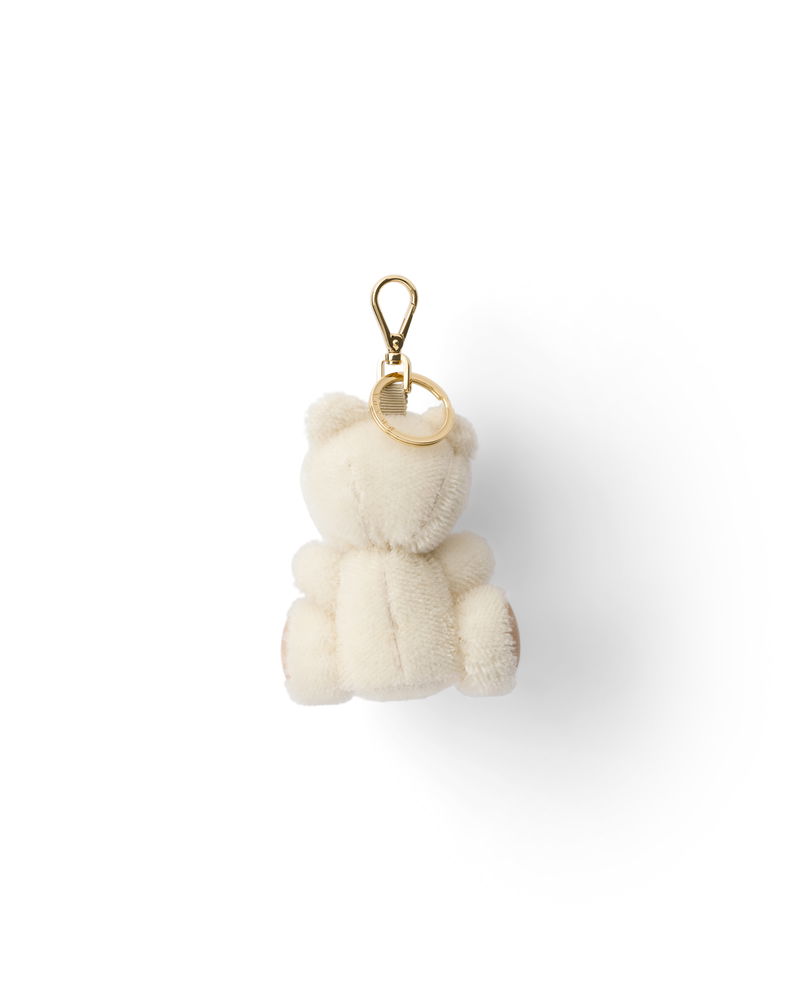 Teddy bear key ring charm with metal ring.