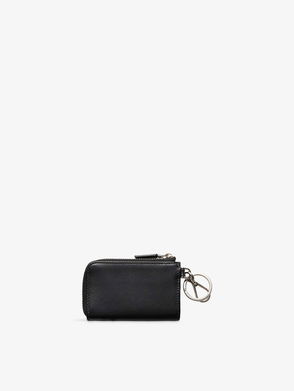 • Square shape, enamelled metal triangle logo at front, one note compartment, six card slots, two interior pockets, two interior zip coin slots, lined
