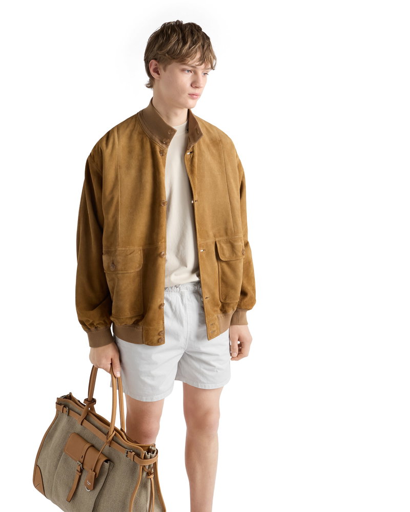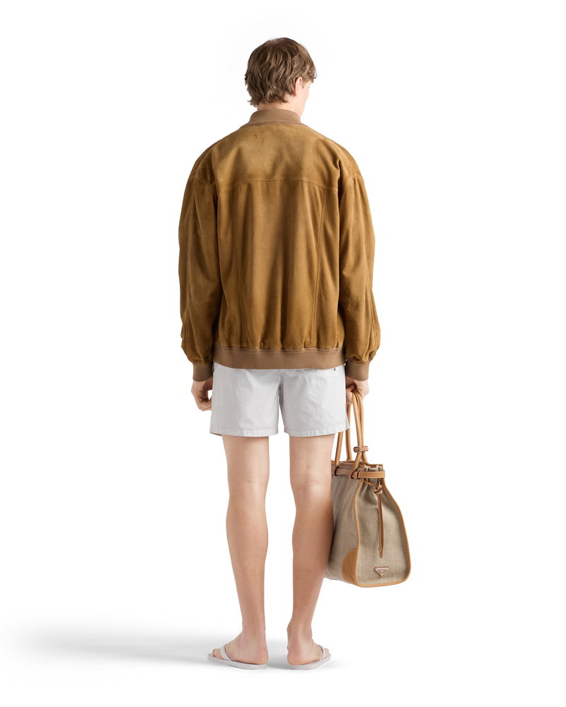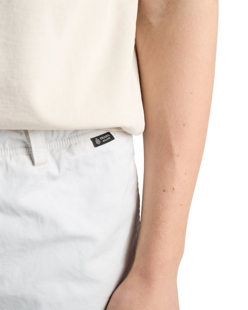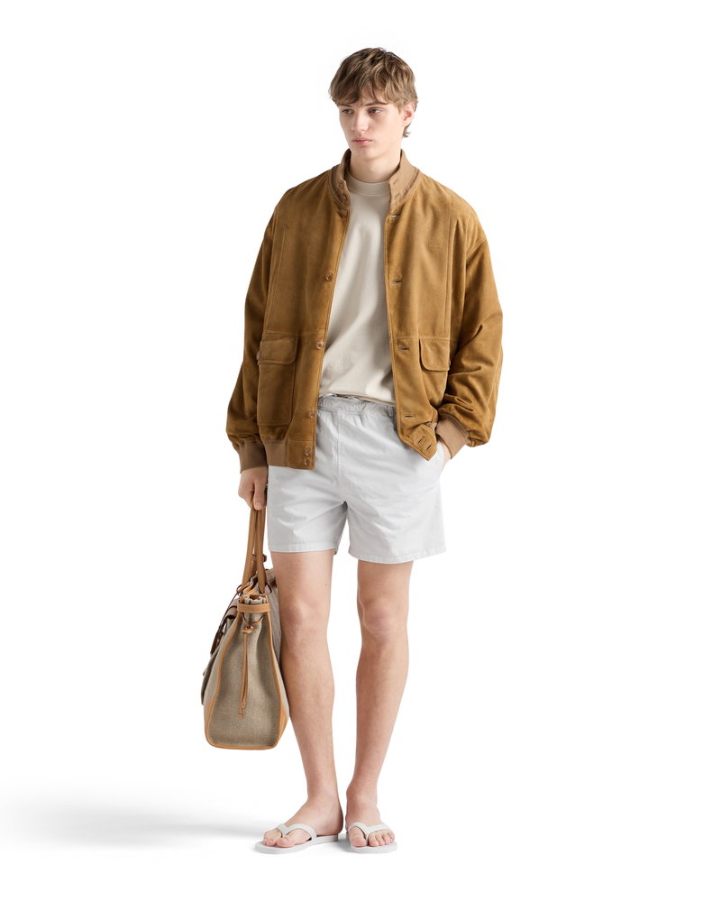 Twill swim trunks.