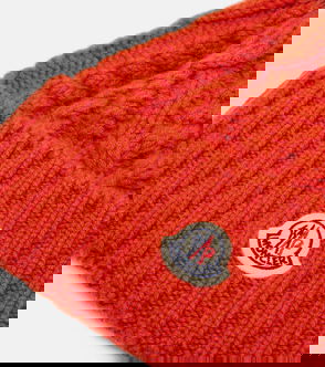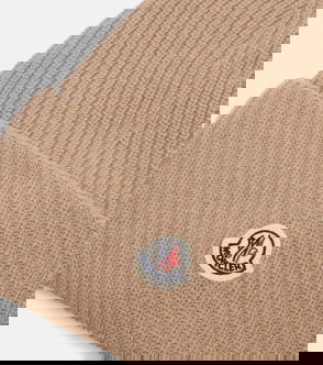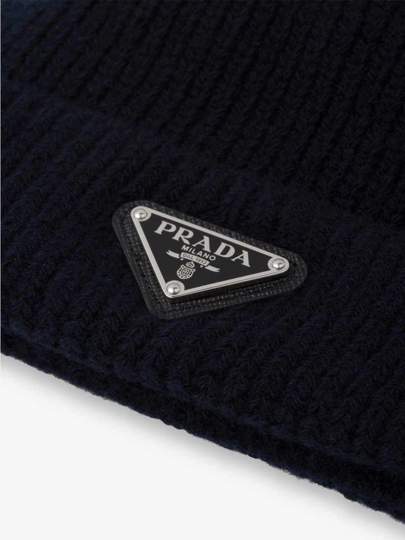 • Folded brim, enamelled triangle logo at front, ribbed knit texture