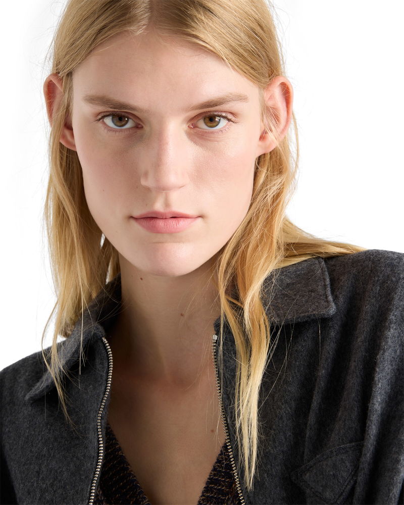 Wool And Cashmere Blouson Jacket, Woman, Slate Gray, Size XS