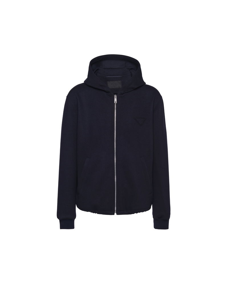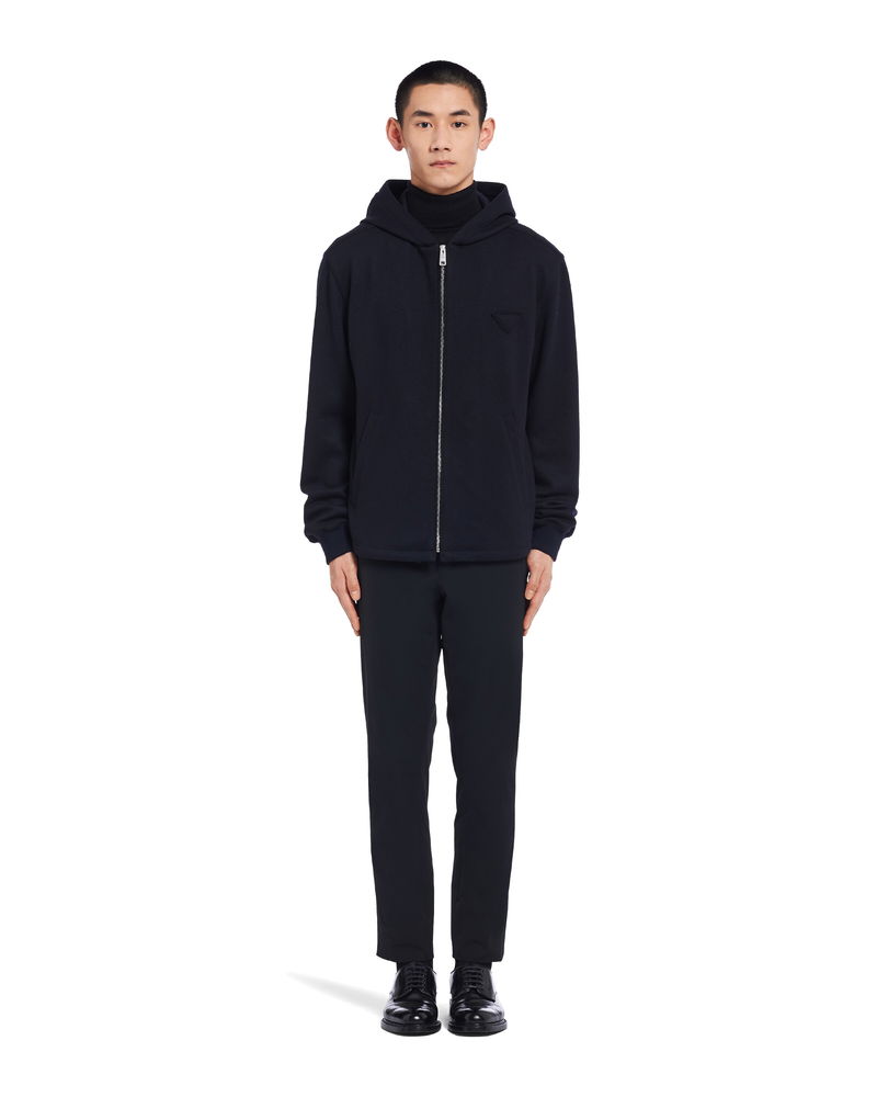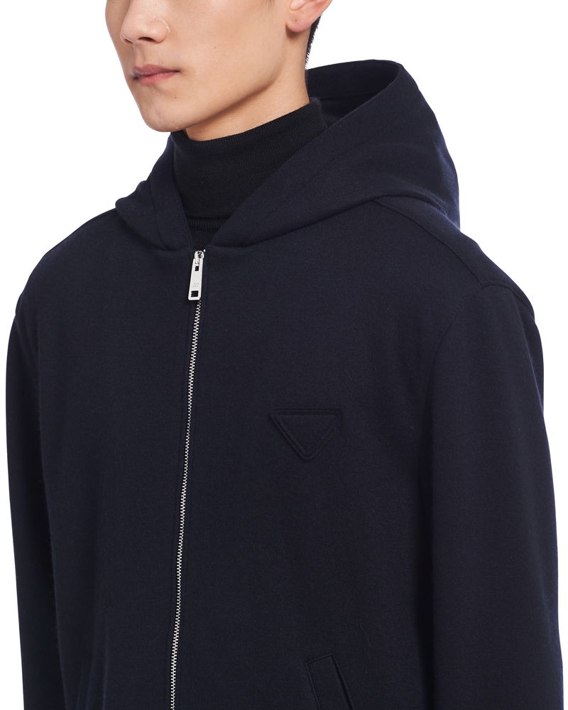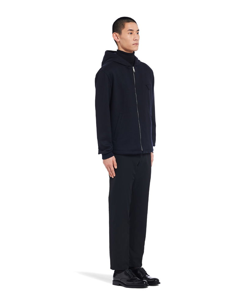 Wool Blend Zipper Hoodie, Man, Navy, Size 54