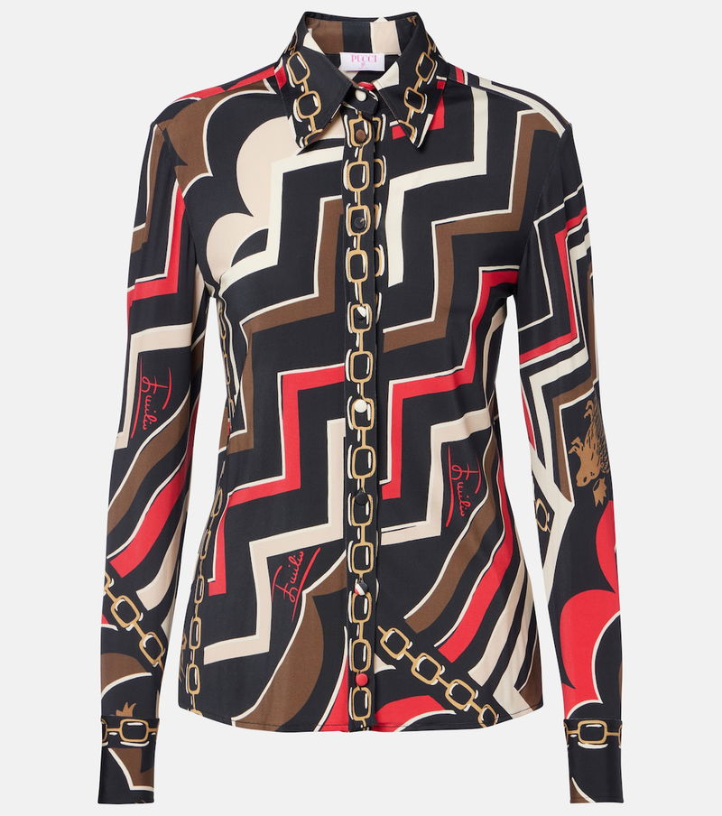 The iconic psychedelic swirling motif is a brand signature, which earned Pucci the title "Prince of Prints". Featuring the house's Istrice pattern, this shirt is made from shiny satin jersey and is complete with a pointed collar.