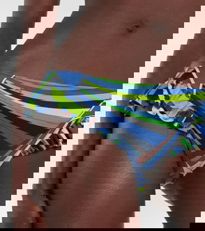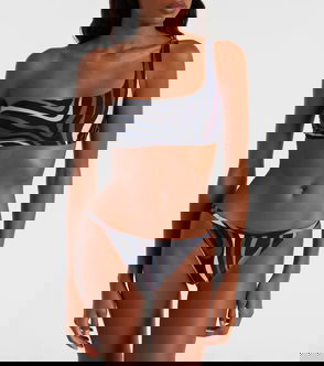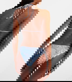Playful yet elegant, this classic triangle bikini top features self-ties with slim chain details and an all-over Occhi print.