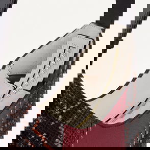 The iconic 1969 Nano bag is crafted from a tight-knit network of silver-toned pellets and rings, featuring magnetic fastening and a chain strap with the Rabanne logo. This style is completed with five colorful detachable charms.
