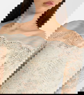 Bridal Embellished Off-shoulder Lace Midi Dress