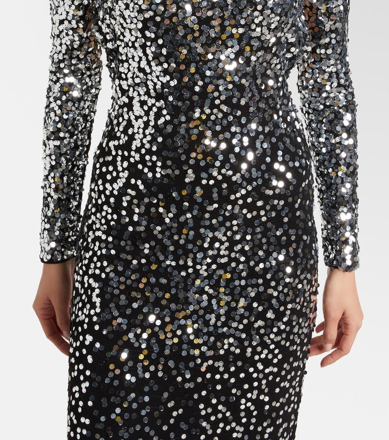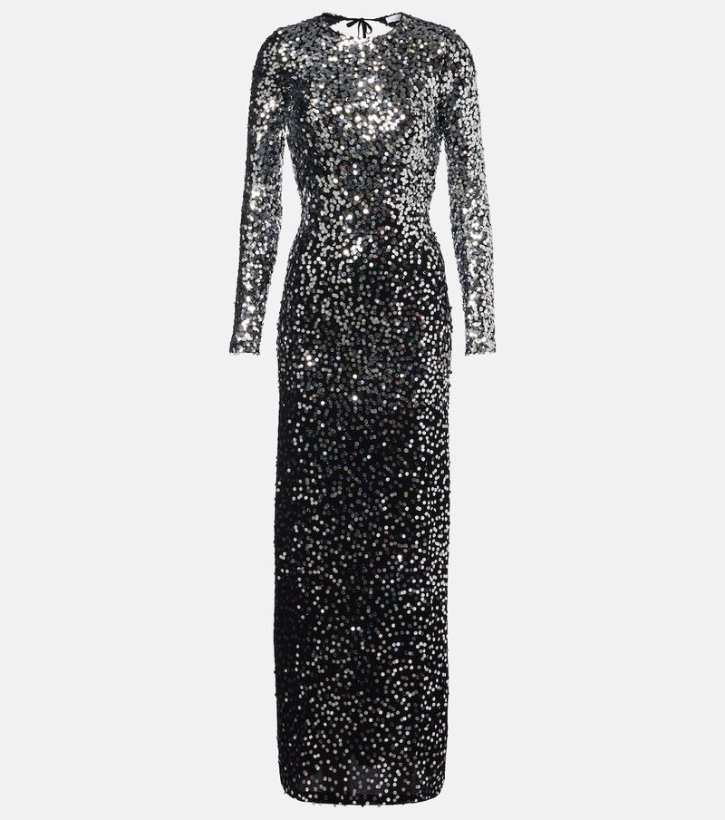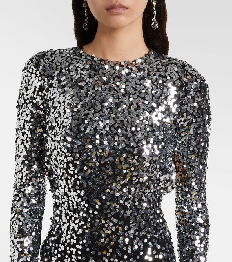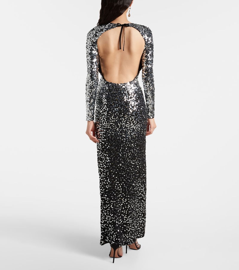 Celebrated for creating glamorous designs with unexpected materials, Rabanne’s innovative spirit continues to break boundaries. This long-sleeved jersey gown is embellished with dazzling sequins and is complete with an open back for a captivating finish.