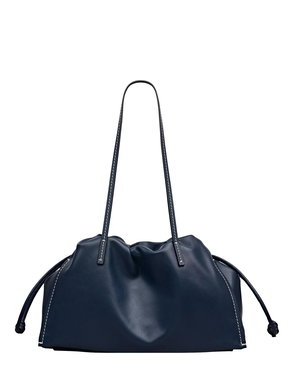 A deep scooped silhouette, mirrored by curving top edge inserts. The Bliss Crescent shoulder bag is a sculptural masterpiece, one that's been expertly shaped using smooth leather.