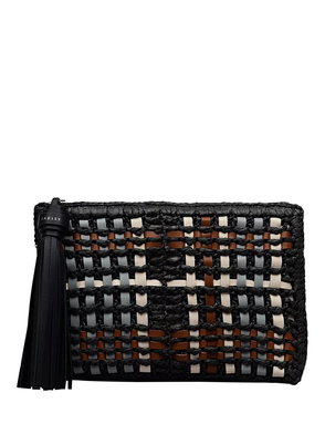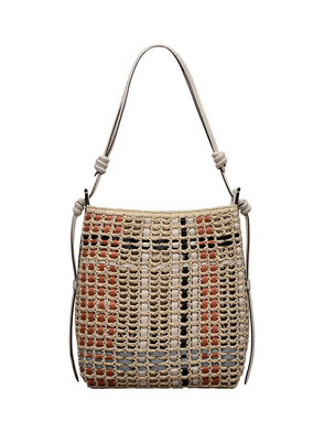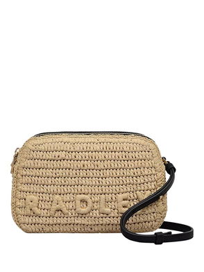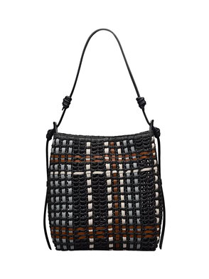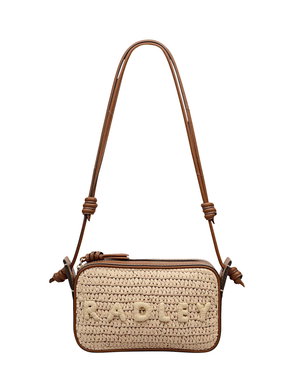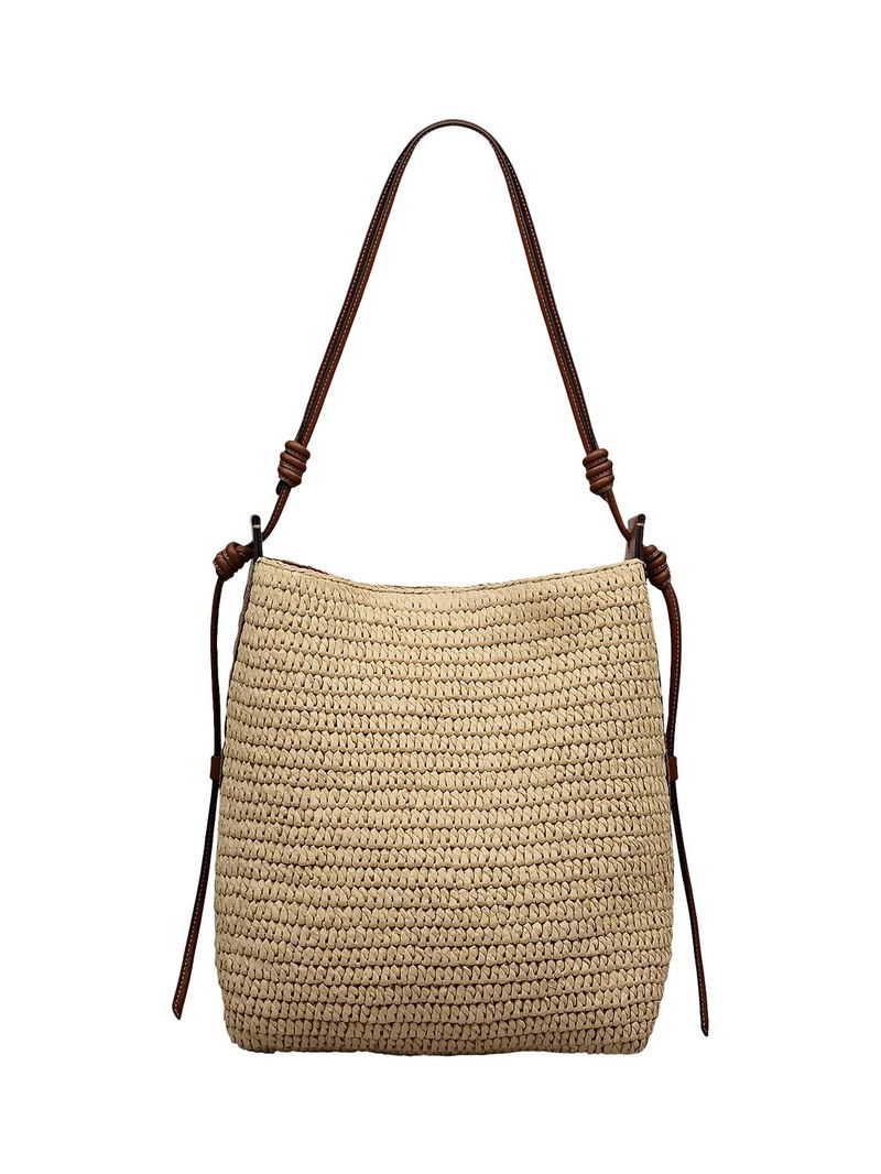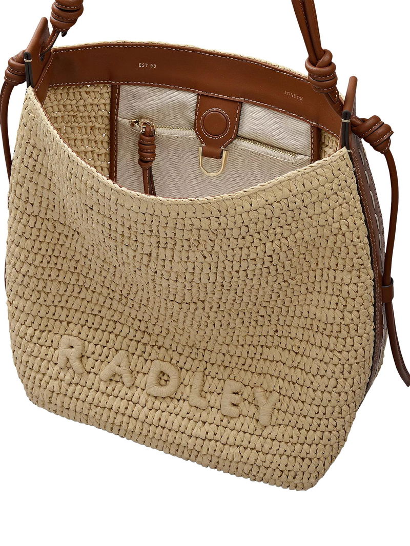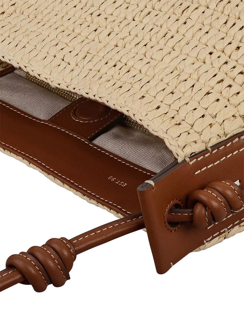 Craft details transform The Camden from an everyday beach-style bucket bag into an artisanal creation. Woven using natural raffia with smooth leather trims, this bag's details include a tubular leather strap with sliding adjustability, contrast leather stitching along the edges and a 3D textured version of the brand's signature logo. Features an adjustable tubular strap with knotted details and interior hanging zipped pocket.