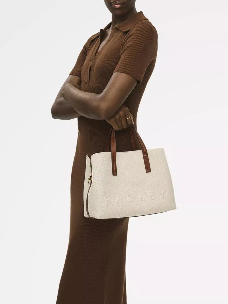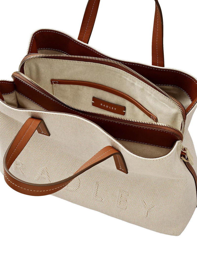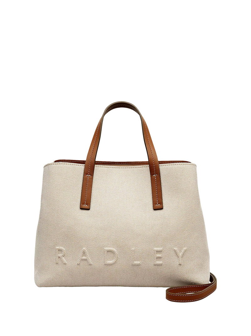From the iconic Dukes Place collection, the grab bag is one of Radley's bestselling styles. Now crafted from durable canvas, it features the signature detachable strap and three spacious compartments to keep your essentials perfectly organised. Crafted from durable canvas and smooth leather accents. Comes with a Radley branded dust bag.