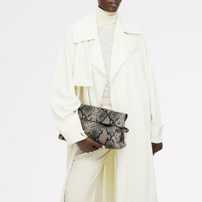 Fleet Street Leather Large Flapover Clutch Bag In Pine Needle