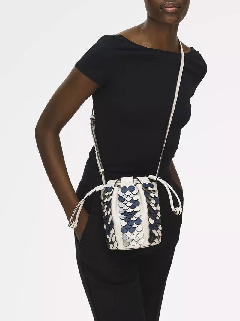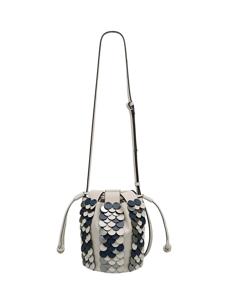 The Flora is reimagined with leather sequin embellishments, designed to scatter light even with minimal movement. Its signature bucket silhouette is layered with textured overlays, grounded by a neutral base that moves effortlessly from day to evening.
