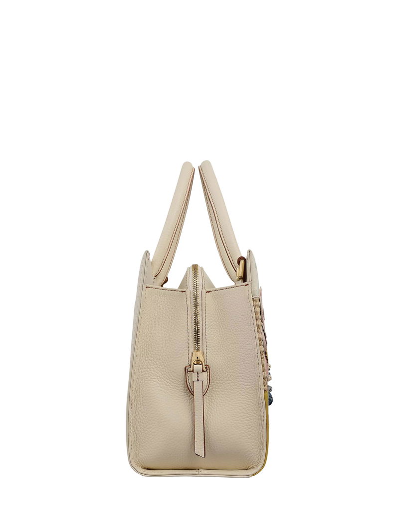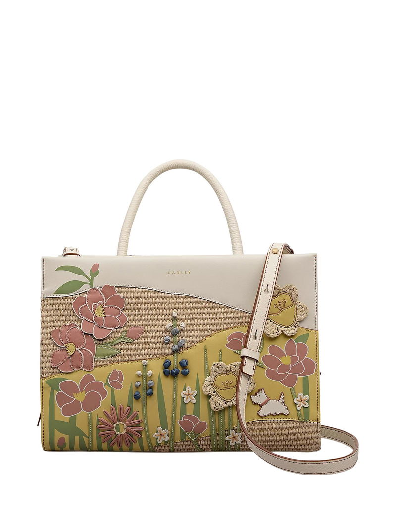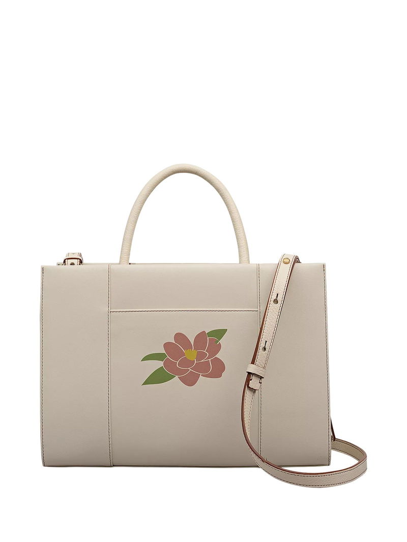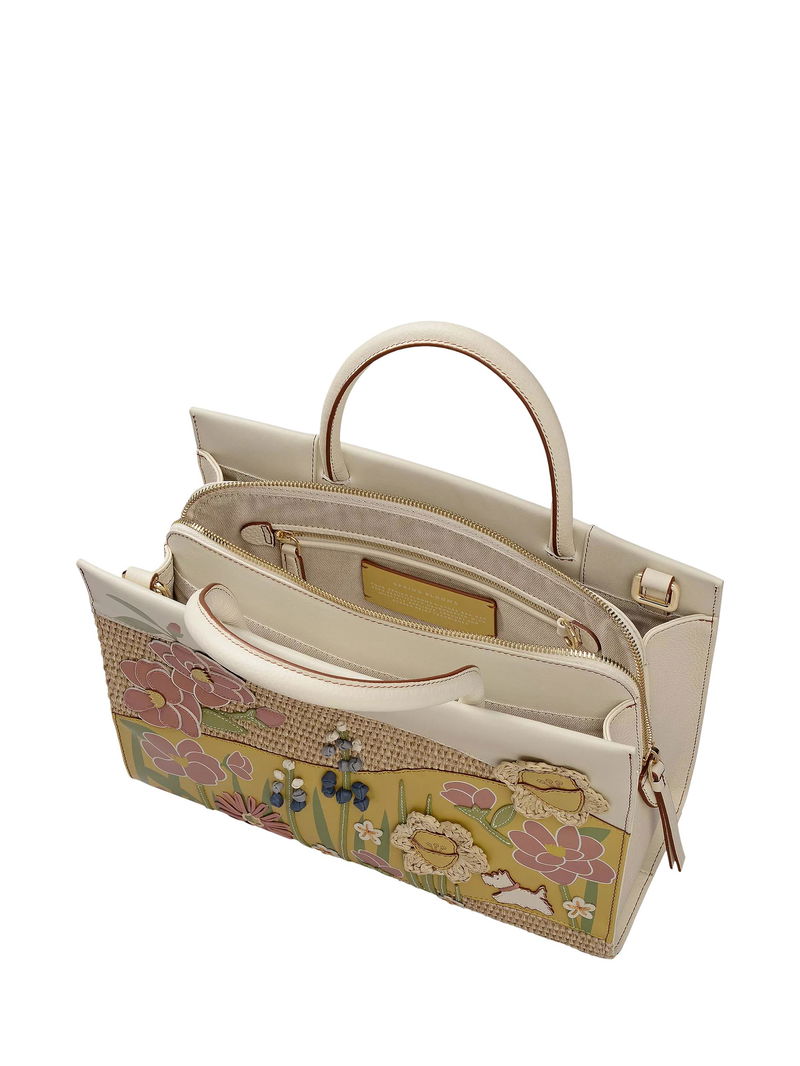 An icon of leathercraft, this picture bag returns this spring as a textural masterpiece. Inlaid woven raffia and smooth leather come together to form the backdrop of the Spring Blooms collectible, with intricate floral details showcased in leather appliqué, ombre knots, stitching and screen prints. This Spring 2026 edition is the first picture bag to feature woven raffia using inlaid techniques. The material, which appears throughout this season's collection, is also used as stitching to create the individual petals of one of the flowers.