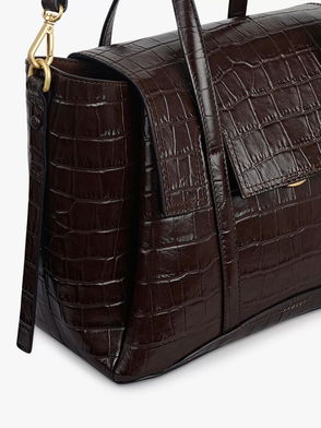 Made with grained leather- Winged shape- Painted cut edges- Grab handles- Adjustable strap- Sunken zip fastening with branded metal puller and leather trim- Interior pockets - Foil logo- Comes with a dust bag.