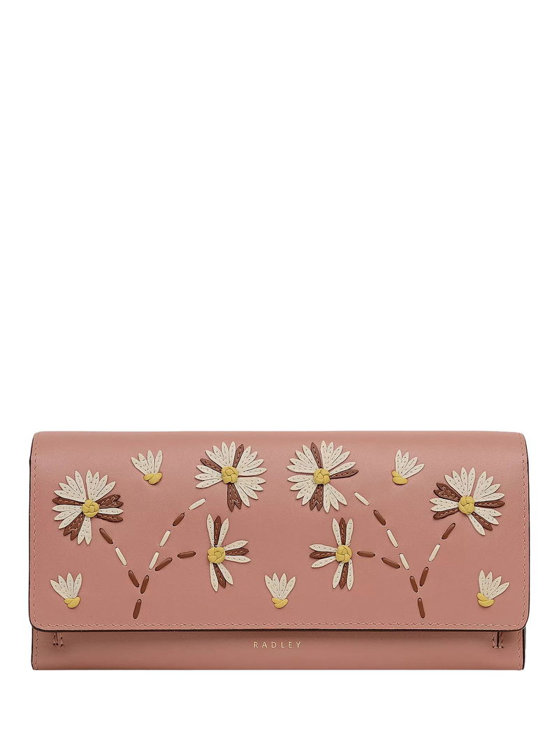 Leather craft techniques showcased in miniature across a practical smooth leather shape. The Picton Place large matinee purse is back with floral-shaped leather stitching, appliqué and knotted details. With a spot for every essential inside, this sophisticated style truly earns its place in your handbag. Features a flap-over shape with press-stud fastening, two compartments, ten interior card slots and a zipped pocket. Comes with a dust bag.