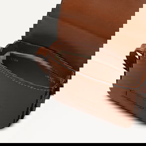 This card bag is crafted with the heritage veneer leather, stitch detailing and an adjustable strap that weaves all the way around the base.