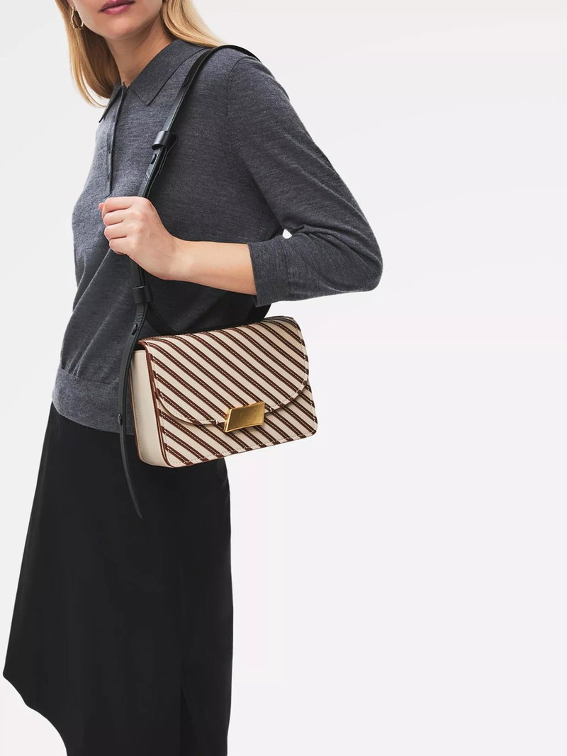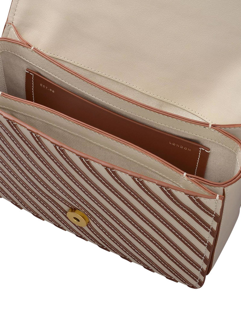 Modern features are in abundance across The Belsize. The smart, boxy shape is punctuated with signature Radley plate hardware, created to mirror the organic curves of folded leather, and a wide judo belt strap attached across the top. Updated for the new season with checked stitching or appliquéd stripes.