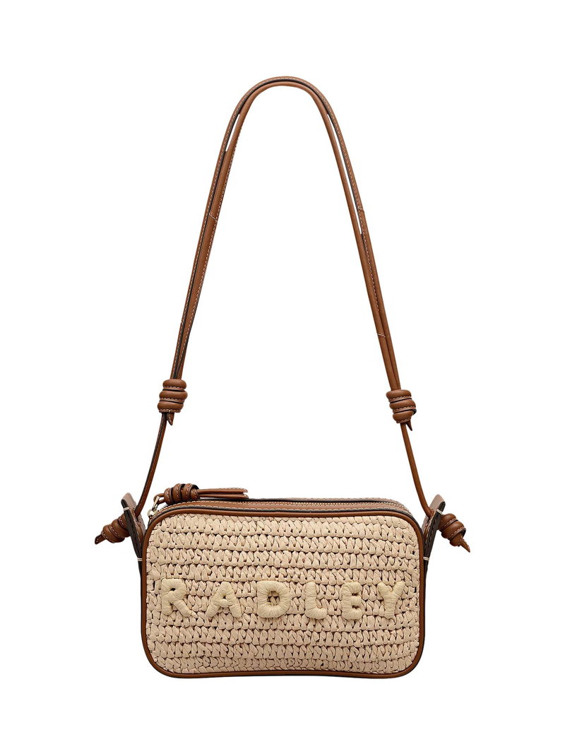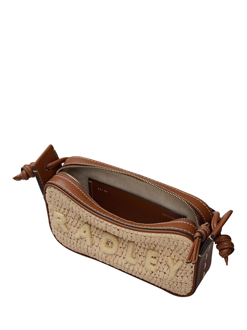 Craft details transform The Camden from an everyday crossbody into an artisanal creation. Woven using natural raffia with smooth leather trims, this bag's details include a tubular leather strap with sliding adjustability, piped edges and a 3D textured version of the brand's signature logo. Features an adjustable tubular strap with knotted details, zip fastening with knotted puller, canvas lining, interior slip pocket and slip back pocket. Comes with a dust bag.