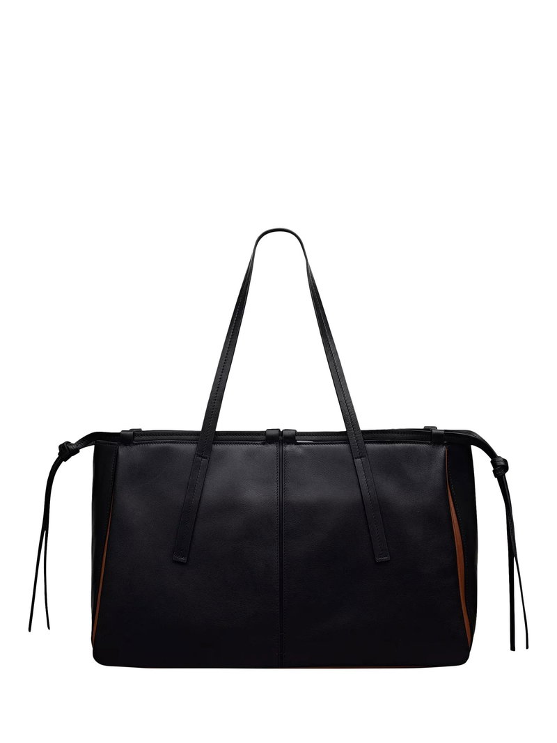 An abundance of craft details transform The Connaught from an everyday tote bag into an artisanal creation. Details include thin leather threaded through the loops along the top edge, decorative knotted trims that hang at the sides and contrast inserts, which can be spotted at the gussets.