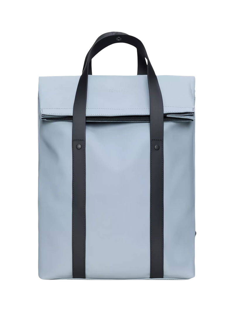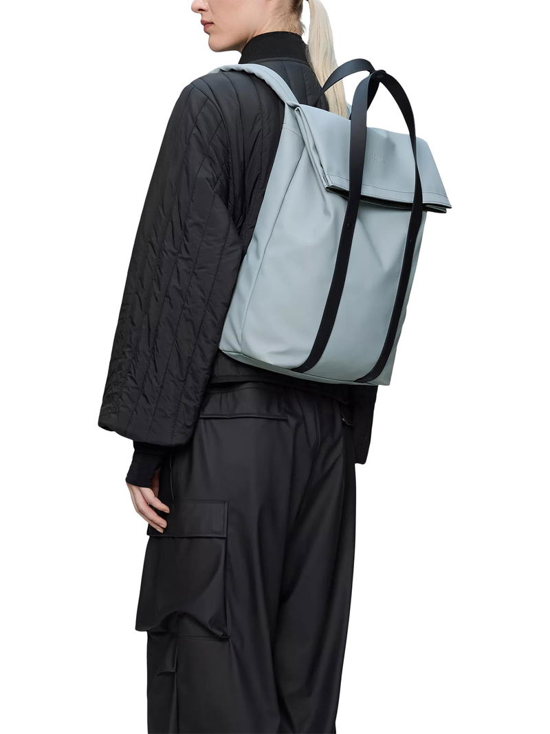 The Rains 2-Way Tote Backpack is a clean, commuter-friendly design with tote function, characterised by a fold-top opening and signature TPU strap details with top handles. The fold-top opening gives full access to a spacious main compartment with multiple slip and zip pockets and a padded pocket that fits a 16” laptop.
