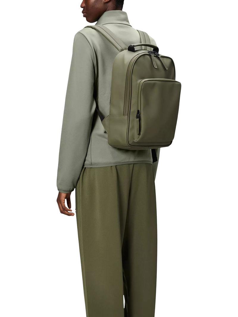 The Rains Book Daypack is a minimal-style backpack, with a campus-ready silhouette. Featuring a zipped main compartment, external zip pocket, top handle and mesh back.