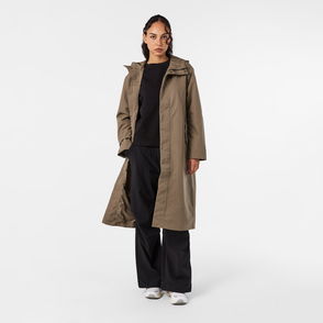 Rains rubberised parka. Waterproof, drawstring hood with peak, high-neck, press-stud fastening front flap front pockets, ventilation eyelets at underarms, elasticated cuffs, storm flap at back with ventilation cut-out details, welded seams, longer drawstring fishtail back hem.