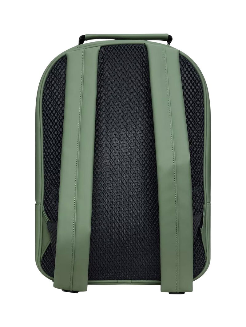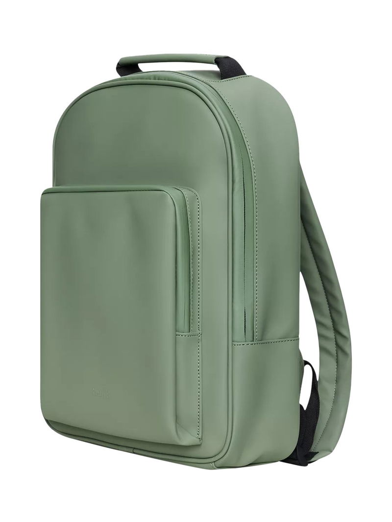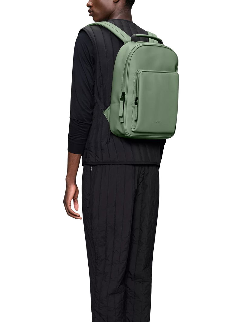 Book Daypack Large is characterised by its roomy size, perfect for carrying larger tech. It's cut in waterproof PU fabric, designed to repel rain. Book Daypack Large is a clean, ever-contemporary and waterproof backpack. The sleek design holds space for it all with a large main compartment that includes a padded laptop pocket. A zipped front pocket provides storage space for smaller essentials with easy access. Book Daypack Large features a carrying handle on top, breathable mesh panel on the back and adjustable backstraps for comfort. The padded pocket fits a 16” laptop making this waterproof design a perfect tech-ready staple for commuting on bike or by foot. Design is cut from Rains' signature waterproof PU fabric, engineered for carrying strength, durability and a smooth feel.