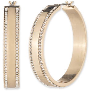 These classic gold-tone hoop earrings are reimagined with a touch of texture, featuring a sleek polished finish framed by delicate beaded edging.