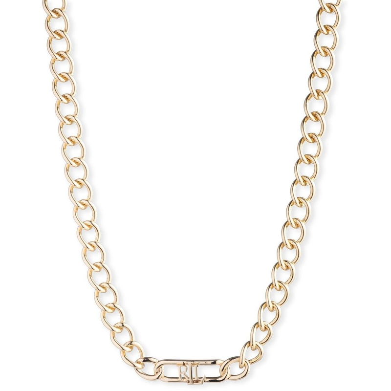 Make a bold style statement with this striking chain necklace from Lauren Ralph Lauren. Designed in a gleaming gold-tone finish, it features chunky interlocking links that create a modern yet timeless look. At its centre, the signature LRL logo is subtly integrated into the design, adding a refined brand touch. Perfect for layering or wearing solo, this necklace brings effortless sophistication to any outfit. Presented in an LRL pouch.
