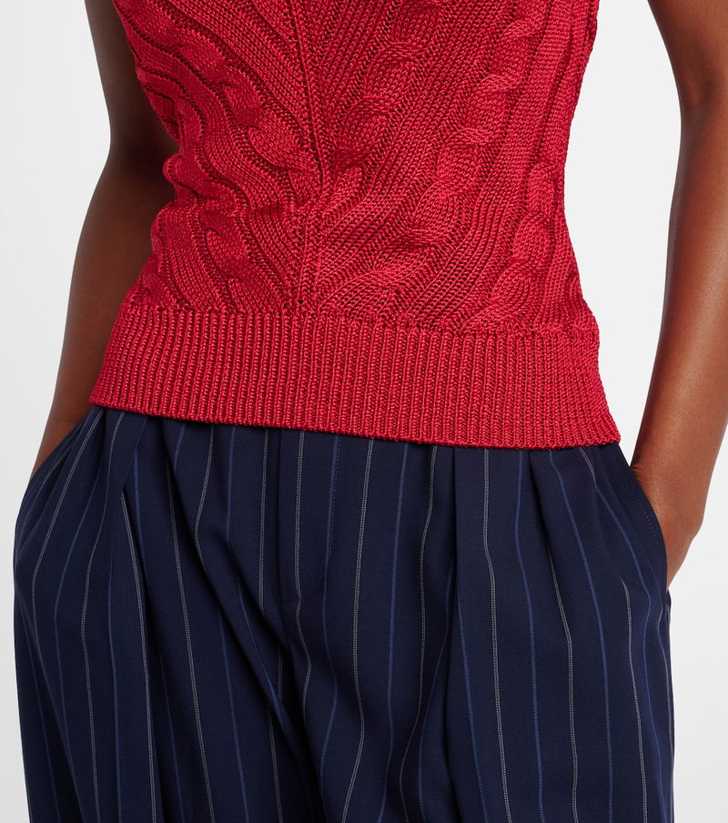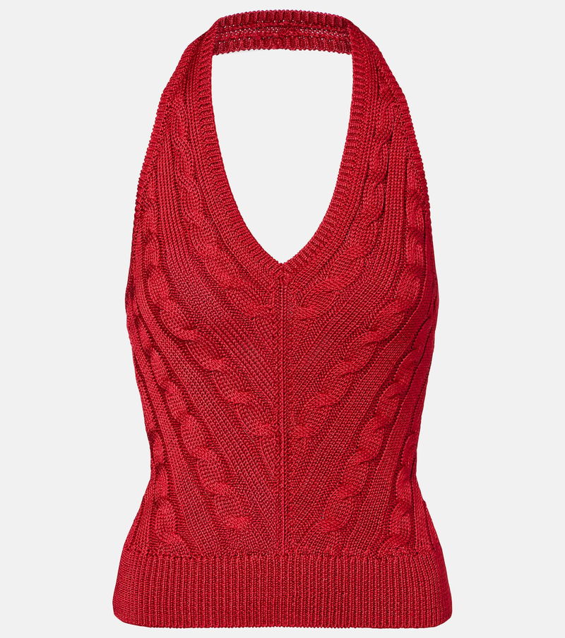 This top from Ralph Lauren Collection is made from luxurious silk yarns for a soft and lustrous feel. The style features a classic cable-knit motif and an elegant halter neckline.