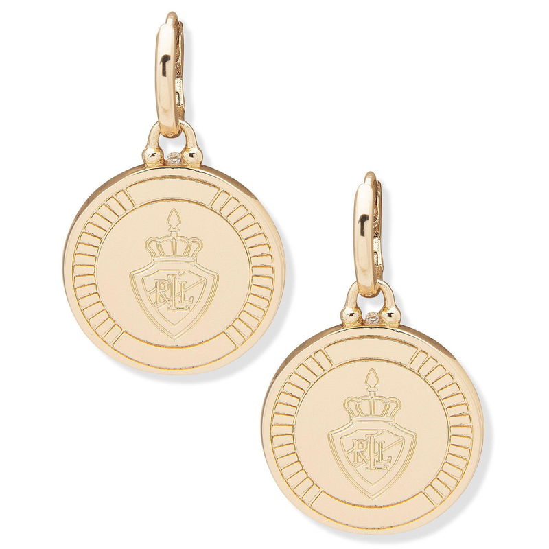 Lauren by Ralph Lauren Crest Disc Drop Earrings. Complete your stylish ensemble with the Lauren by Ralph Lauren Crest Disc Drop Earrings. These stunning earrings have been made to make a statement whether you're going for a romantic dinner out or simply spending the day running errands.