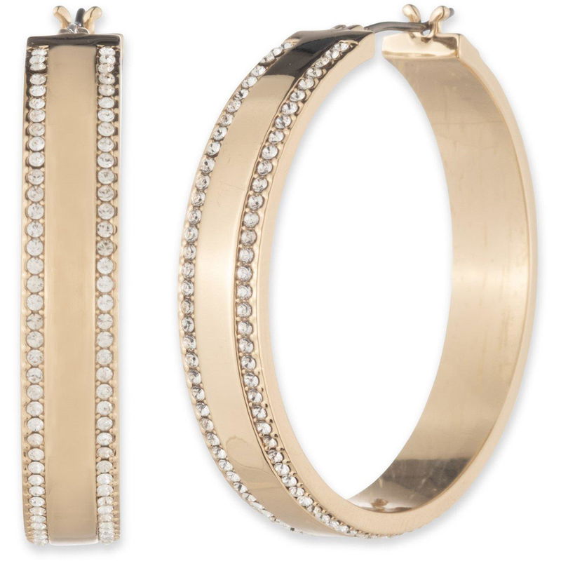 Elegant and effortlessly versatile, the Lauren Ralph Lauren 35mm Crystal Trim Hoop Earrings offer a modern take on a classic silhouette. Expertly crafted in a luminous gold-tone finish, each hoop is accented with a refined line of sparkling pav crystals, adding just the right amount of brilliance to elevate your everyday or evening look. With a 35mm diameter, these medium-sized hoops strike the perfect balance between subtlety and statement making them a timeless choice for any jewelry collection. The secure post-back closure ensures all-day comfort and a seamless fit. Presented in a soft, branded Lauren Ralph Lauren pouch, these radiant hoops are ideal for gifting or for adding a touch of polished glamour to your own wardrobe. The hoops shimmer with festive brilliance, a timeless Christmas gift for her, designed to elevate every celebration with iconic elegance.