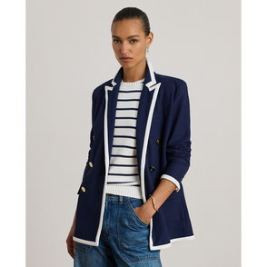Lightweight linen-and-cotton herringbone brings subtle texture to the structured silhouette of this double-breasted blazer, which is finished with peak lapels and crest-embossed buttons.