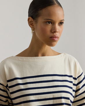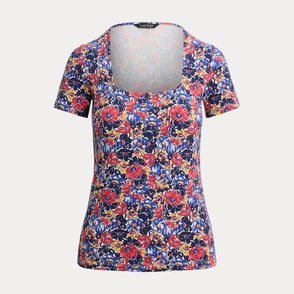 Crafted from breathable stretch cotton, this boatneck tee is enlivened by the season’s stylised red-and-tan floral print. An “LRL”-embroidered logo on the hem adds a subtle signature finish.