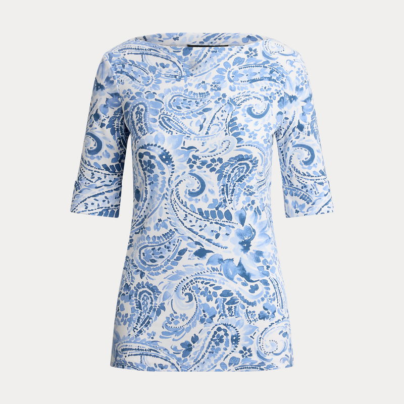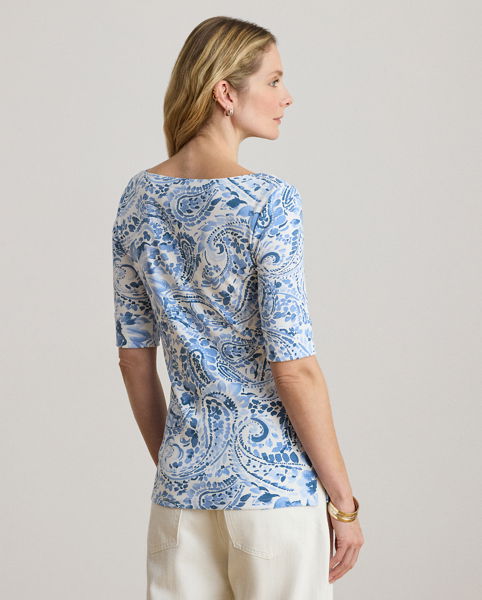 Made from soft stretch cotton, this boatneck T-shirt features the season’s artistic paisley motif in a blue and white colour palette. An "LRL" embroidered logo on the hem adds a subtle signature finish.