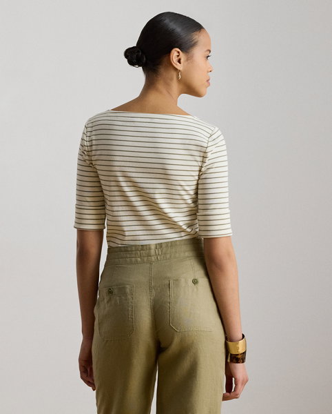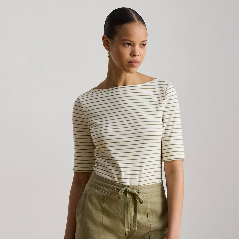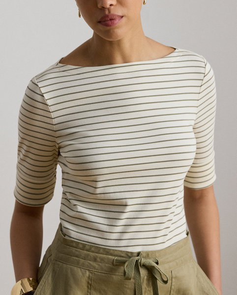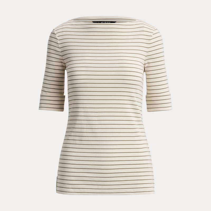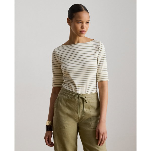 Petite - Striped Stretch Cotton Boatneck T-Shirt