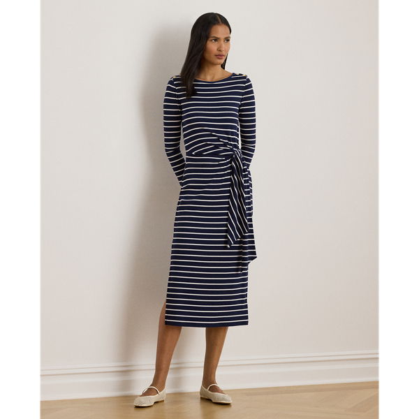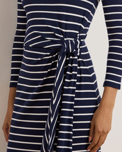 Petite - Striped Tie-Front Cotton-Blend Dress