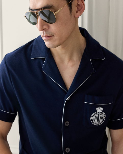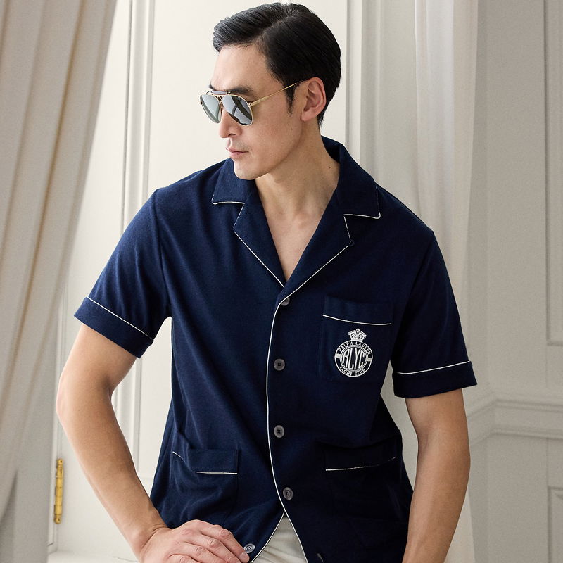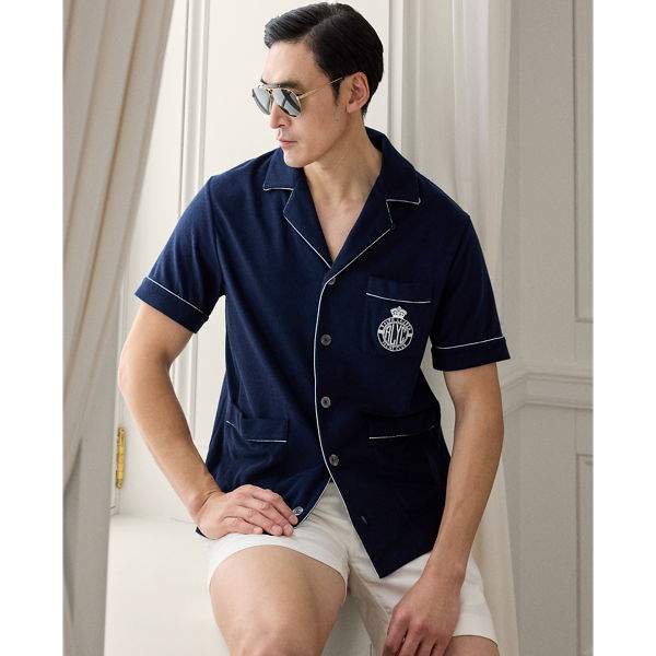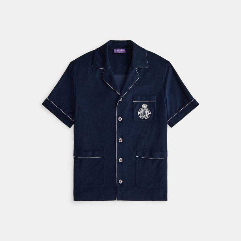 Expertly crafted in Italy, this shirt exemplifies casual elegance with its lightweight cotton-and-silk terry fabric, which is both comfortable and luxurious. Considered details include a bespoke " Ralph Lauren Lauren Yacht Club" crest and genuine mother-of-pearl buttons.
