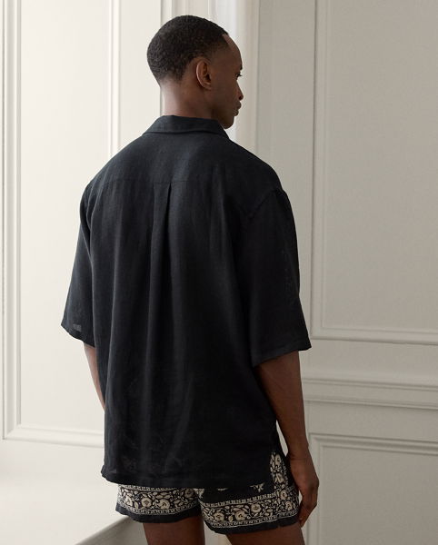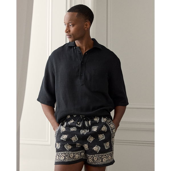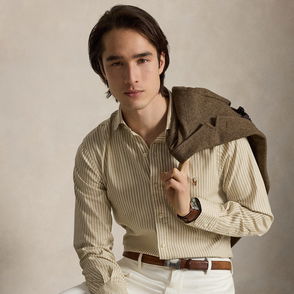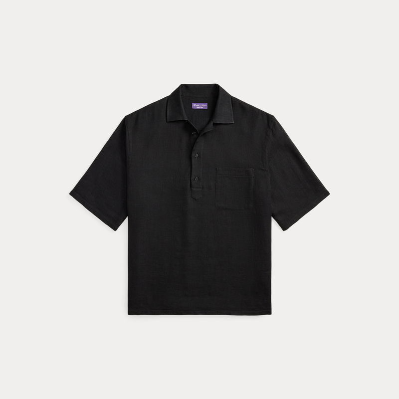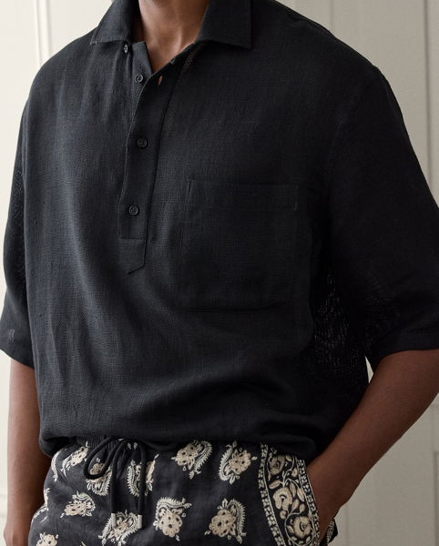 Demonstrating Ralph Lauren Lauren’s dedication to exceptional craftsmanship, this Italian-made shirt showcases a sublime blend of linen, mulberry silk, and cotton, masterfully woven into a rich basket texture. The relaxed silhouette is detailed with bespoke corozo buttons, creating a sartorial expression that is distinctly Purple Label.