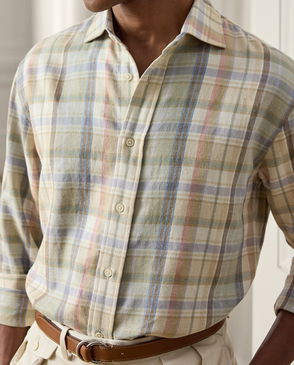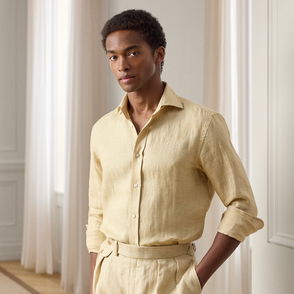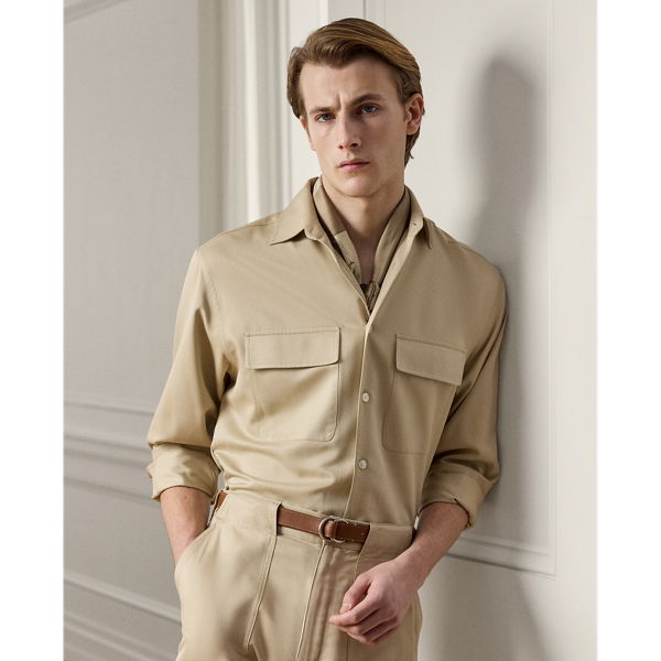 This shirt is crafted in Italy using a silk gabardine that was specially developed for Purple Label. Its bespoke genuine mother-of-pearl buttons add a sophisticated finish that’s distinctly Ralph Lauren Lauren.