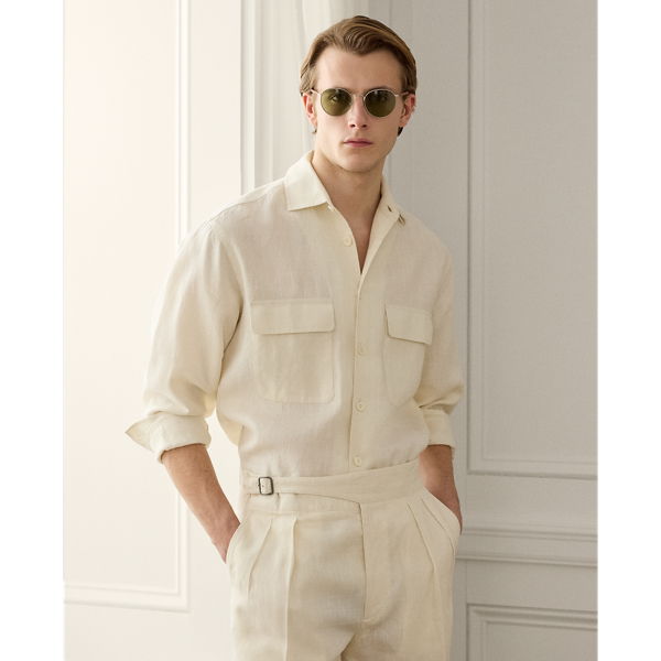 This shirt is crafted in Italy using a linen jacquard fabric that was custom-designed with a tonal, textured windowpane motif. Its bespoke mother-of-pearl buttons add a sophisticated finish that’s distinctly Purple Label.