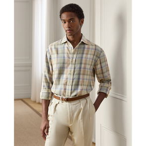 This shirt’s fabric showcases a canvas weave that beautifully combines textured tussah silk and airy linen. Finished with genuine mother-of-pearl buttons, the Italian-made design is a reflection of Purple Label’s unwavering commitment to exceptional materials and impeccable crafting.