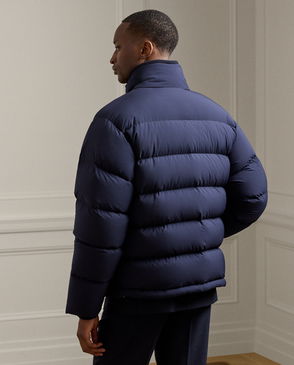 This layer is expertly crafted in Italy with a wool-blend twill that includes cashmere and is lined with silk-and-cotton jersey. While the silhouette nods to classic surplus shirt jackets, it offers substantial warmth courtesy of 750-fill-power down.