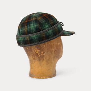 Made from wool-blend felt. Eagle-and-globe bullion patch on the front. Signature green underbill. Leather strap on the back with an antiqued-brass buckle.
