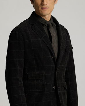 Notch-lapel blazer. Checked wool tweed was custom-developed with an Italian mill. Fibre-dyed mélange fabric features an open-weave construction. Half-lined. Corozo buttons.