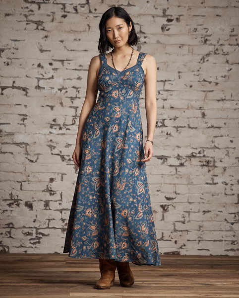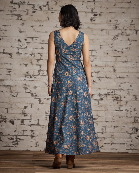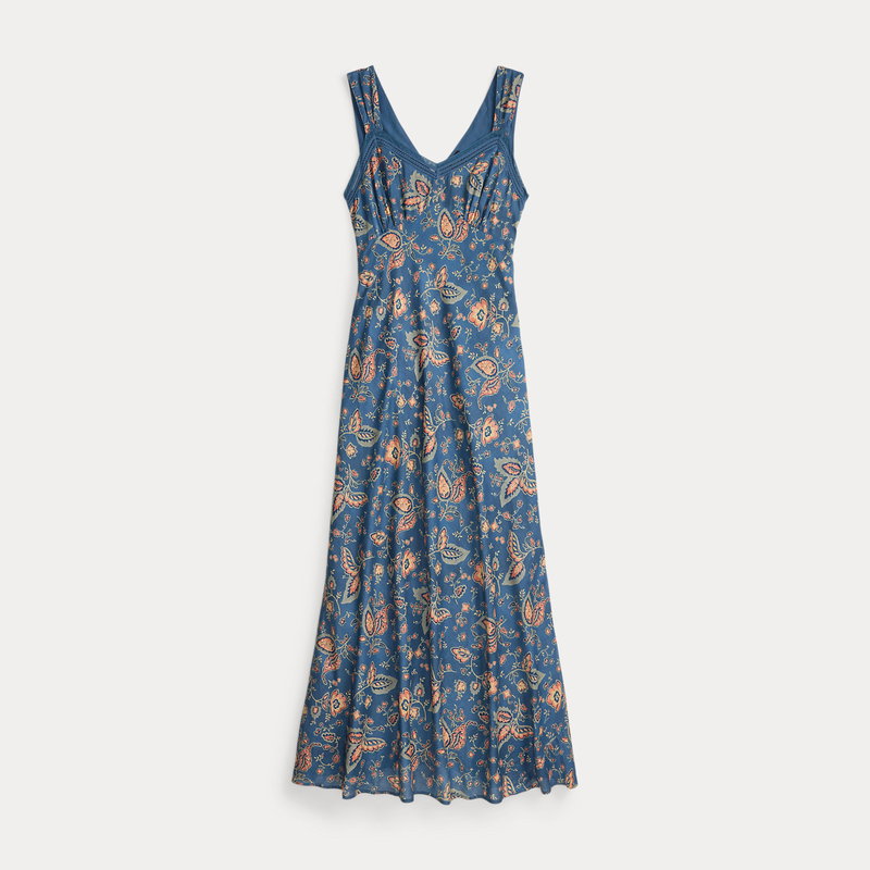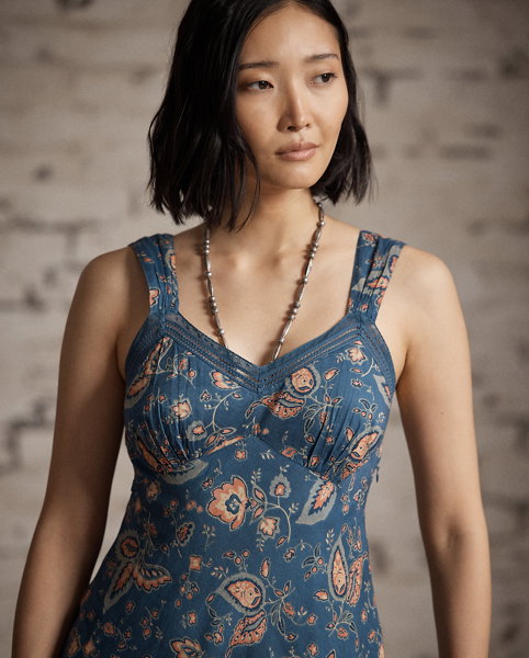 Bias-cut dress made from lightweight cotton voile. Floral print with distressed detailing is based on a 19th-century French textile. Model inspired by a garment from the 1930s. Crocheted lace trim on the neckline. Fully lined.