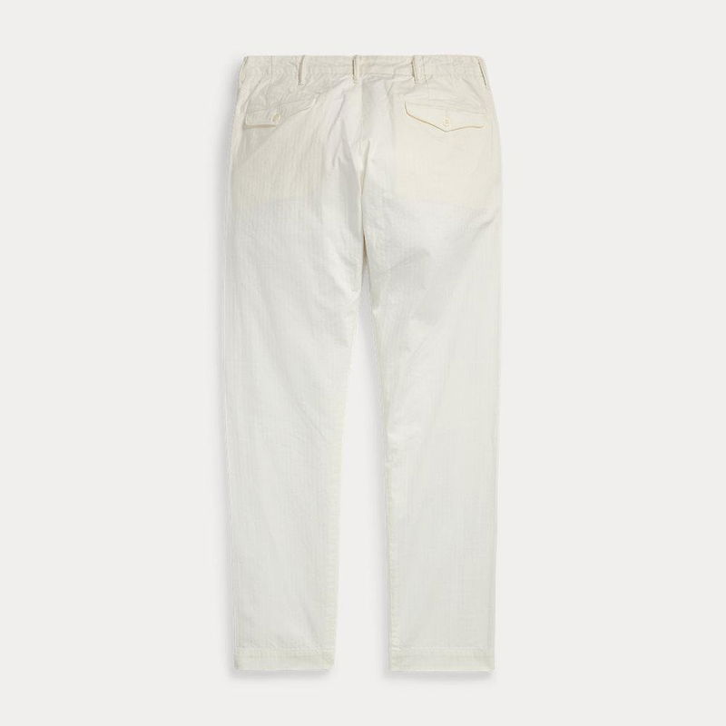 Trim-fitting trousers made with 7.8 oz. cotton herringbone twill. Button fly. Lightly washed. Sanforized to minimise shrinkage.